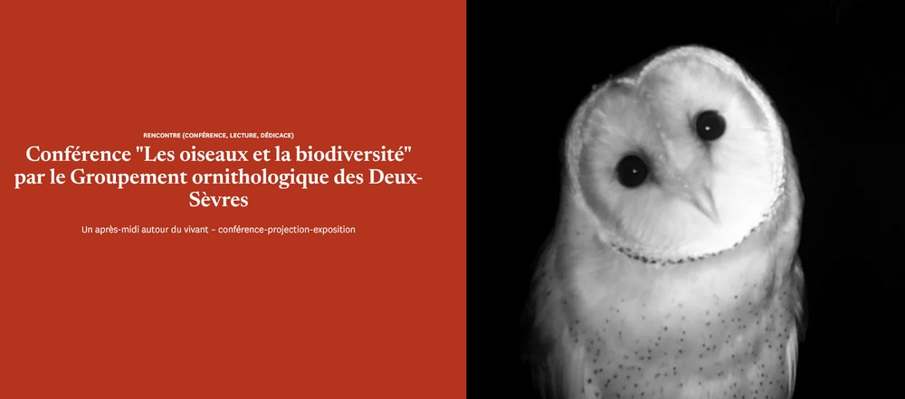 La rencontre se poursuivra par la conférence « Les oiseaux et la biodiversité », consacrée aux actions menées en Deux-Sèvres pour la protection des espèces. Christophe Lartigeau présentera les missions du Groupement Ornithologique des Deux-Sèvres.