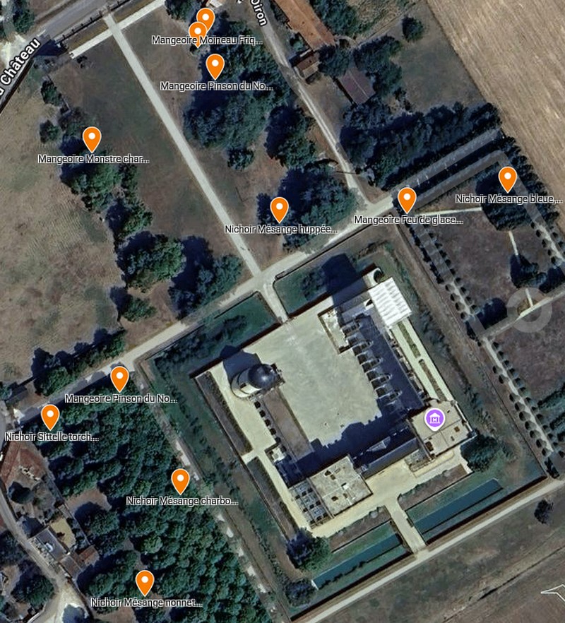 Dans le parc, Julien Salaud a imaginé une série de nichoirs et de mangeoires en céramique. Installées en collaboration avec le Groupement Ornithologique des Deux-Sèvres, elle se découvre au fil des promenades en journée.