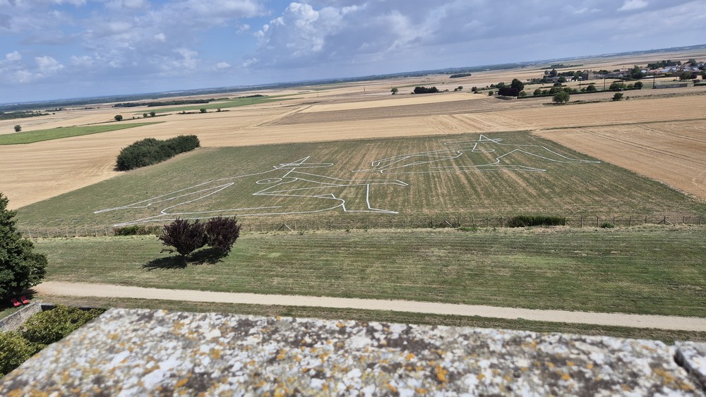 De là, on peut contempler le paysage environnant et deux immenses licornes agenouillées dialoguant paisiblement sur un grand tapis de verdure.